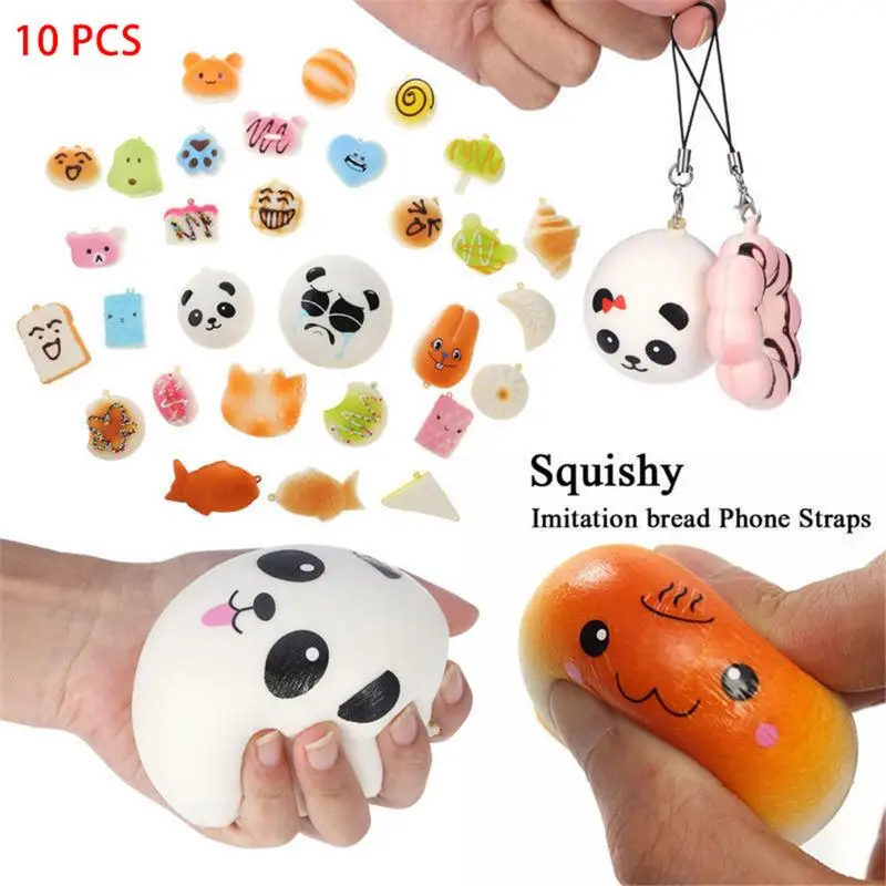 10 PCS Squishy Squeeze Slow Rising Simulation Cake Bread Donut Random Phone Pendant Fun Relieve Str MDA