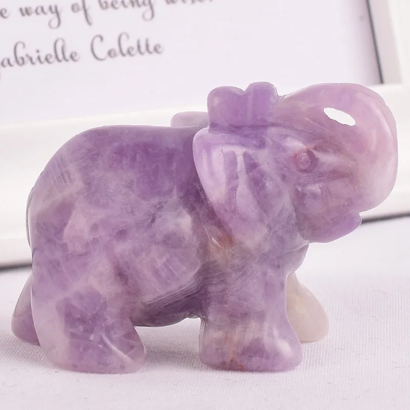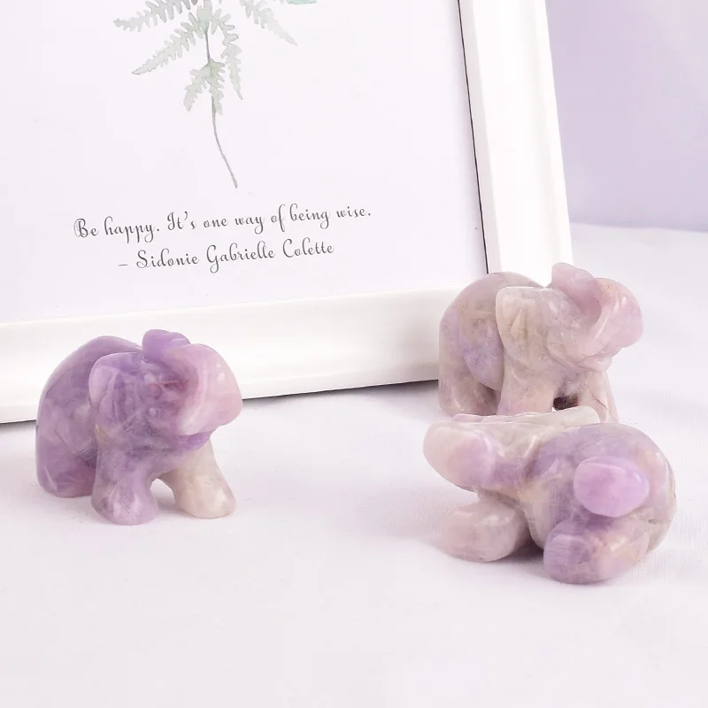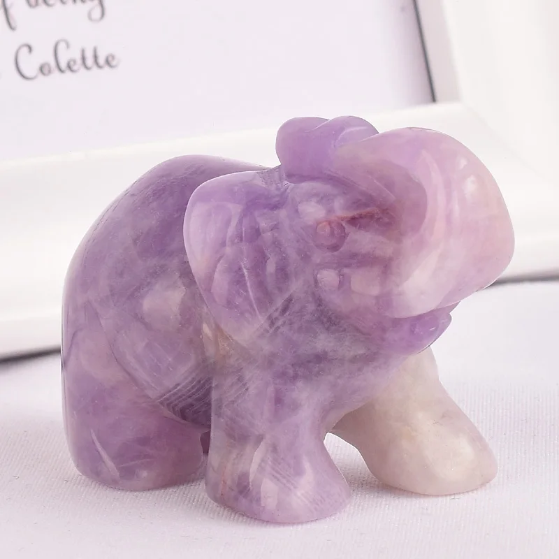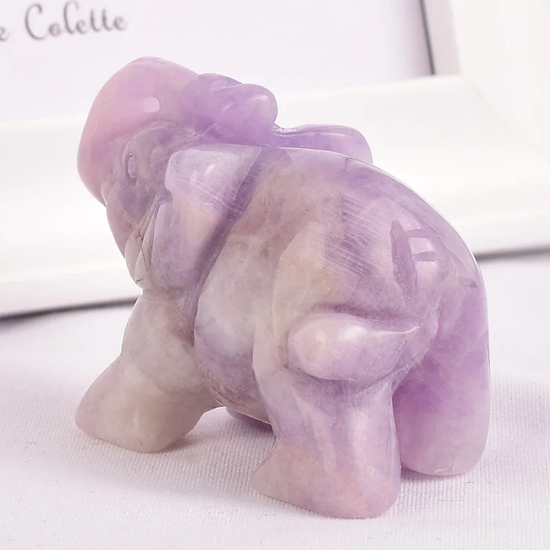 Natural stone amethyst elephant figurines carved craft mini animal statues for children room decora