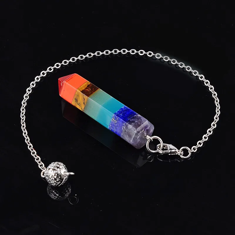 New 7 Chakra Reiki Charm Pyramid Natural Stone Rainbow Layered Dowsing Healing Point Pendant Metal SMO