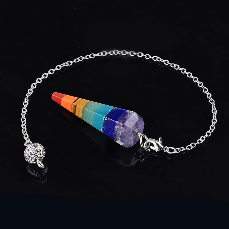 New 7 Chakra Reiki Charm Pyramid Natural Stone Rainbow Layered Dowsing Healing Point Pendant Metal