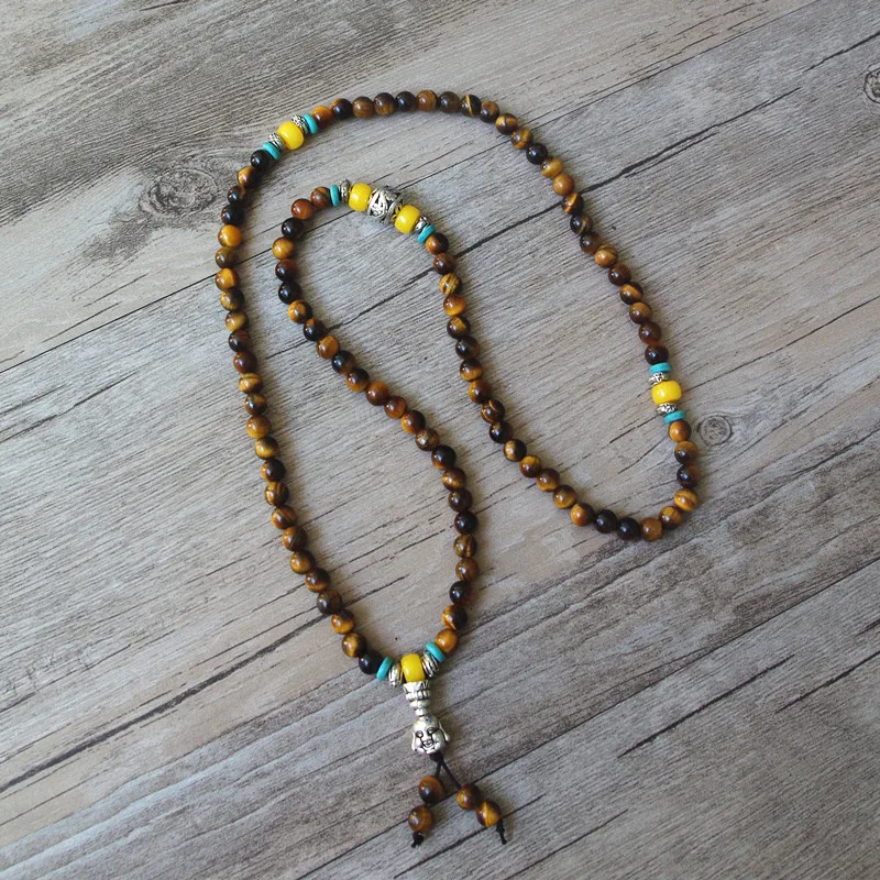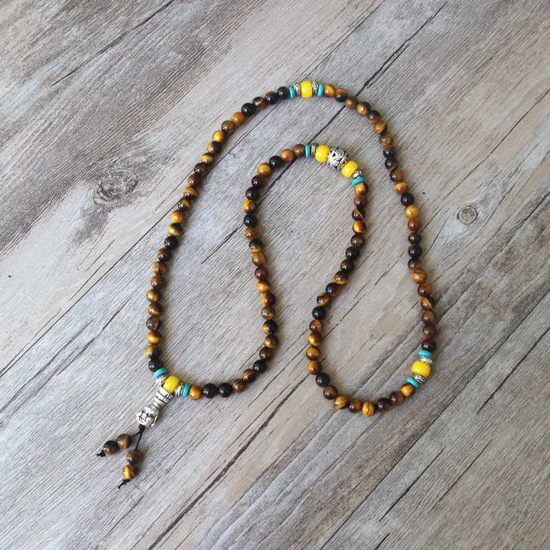 Women Men 6MM 108 Beads Tibetan Buddha Chakra Mala Bracelet Tiger Eye Stone Yoga Zen Healing Charm NBN